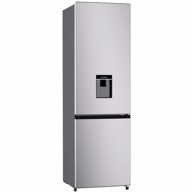 This stylish Inox-look refrigerator combines modern design with everyday practicality. Featuring an integrated horizontal handle and a built-in water dispenser, it adds both convenience and a sleek finish to your kitchen.