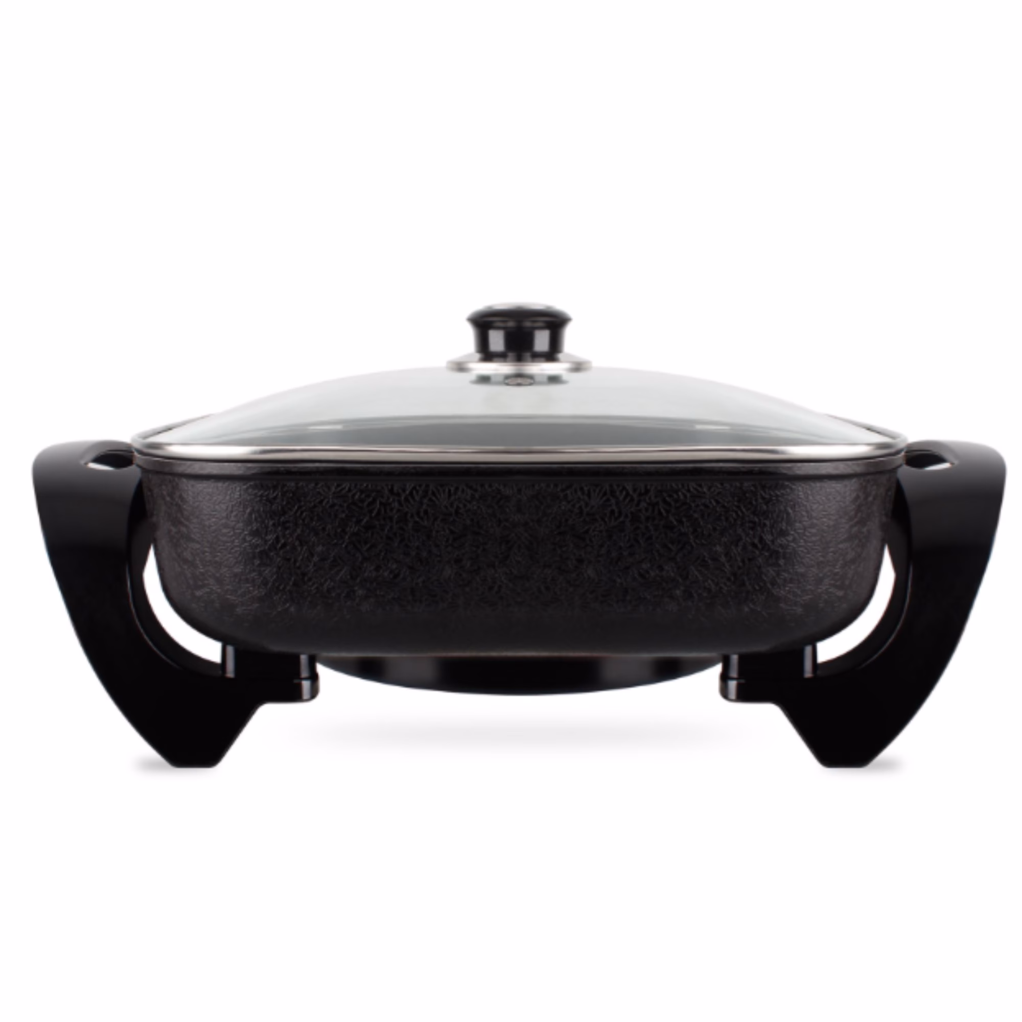 Perfect for quick and easy meals, this multi-purpose electric frying pan ensures even cooking with its durable design and adjustable heat settings.